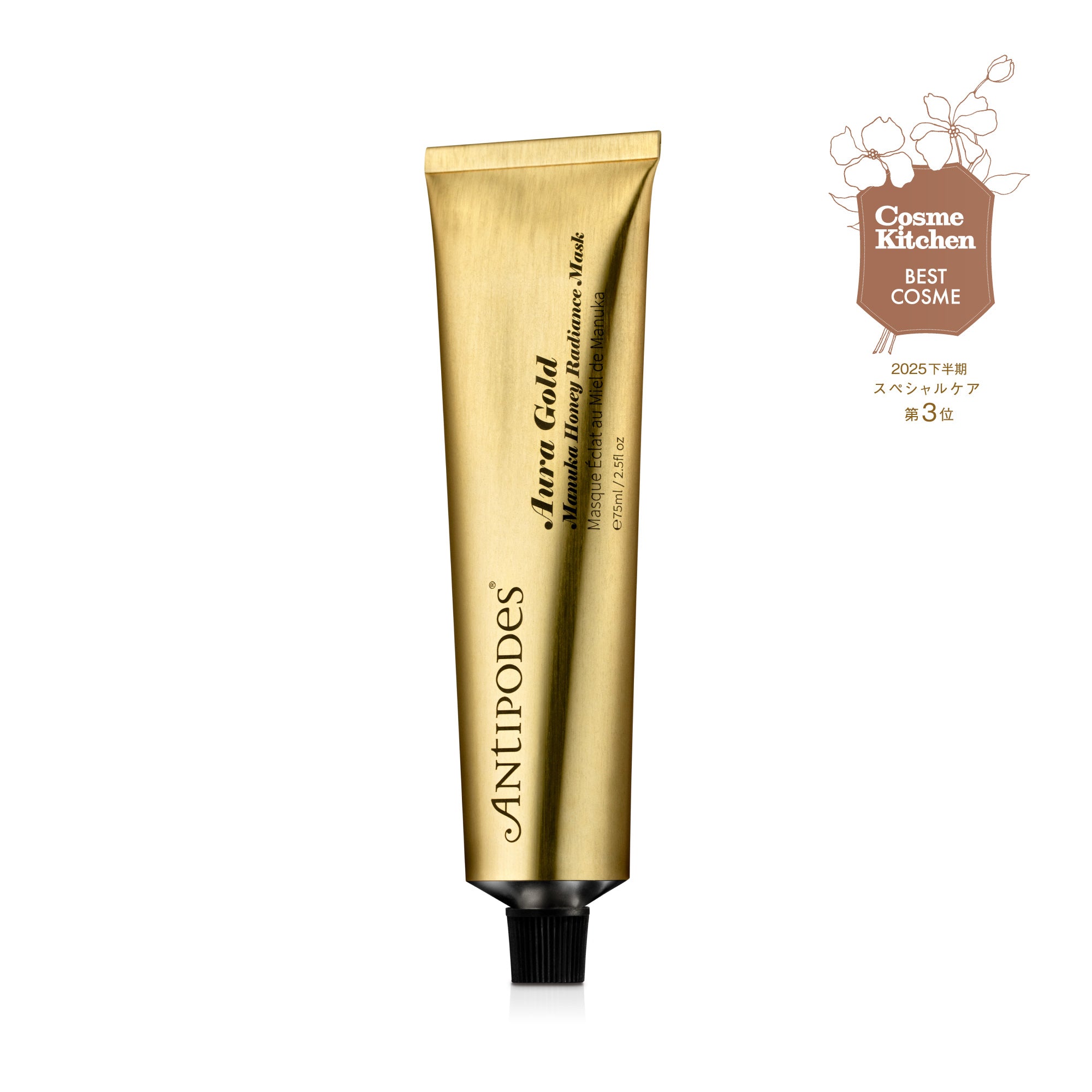 <br><br><strong>ANTIPODES オーラゴールドマスク 75ml「Cosme Kitchen BEST COSME 2025 下半期 スペシャルケア部門 第3位」受賞!<br><br>5種類のキー成分で輝くうるおい肌へ。<br>ラグジュアリーな洗い流すタイプのクリームマスク。</strong><br><br>